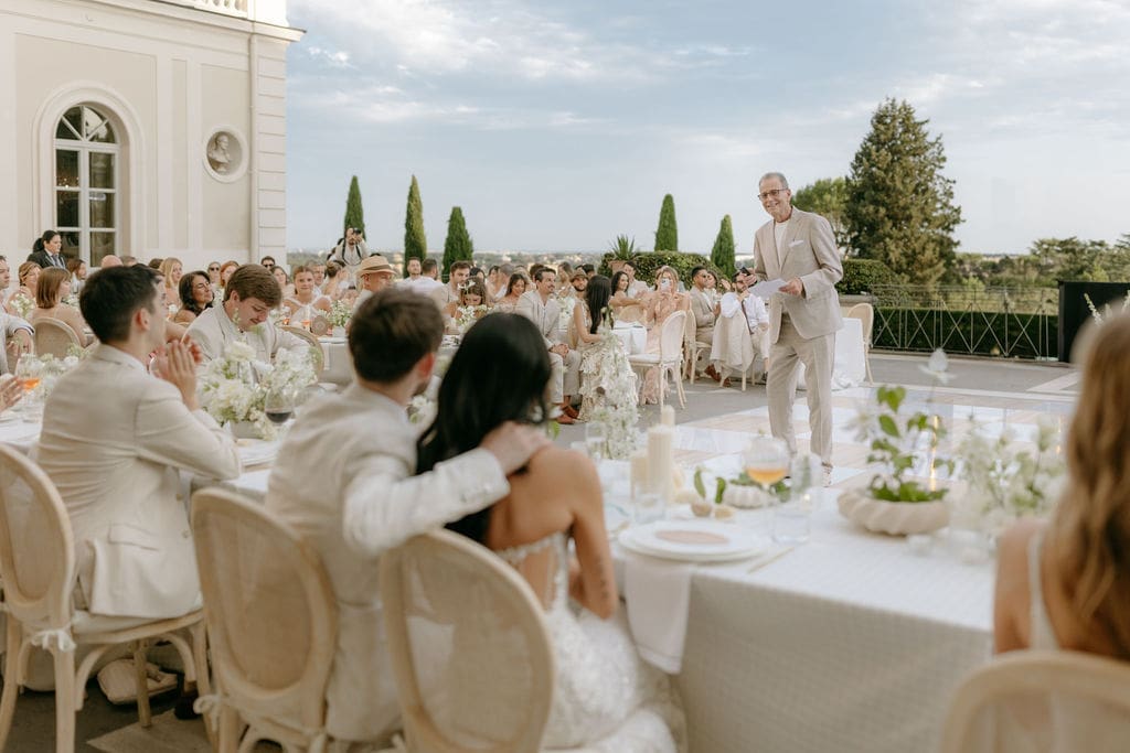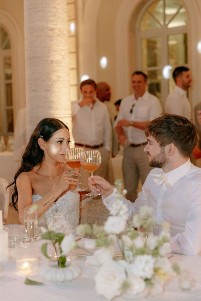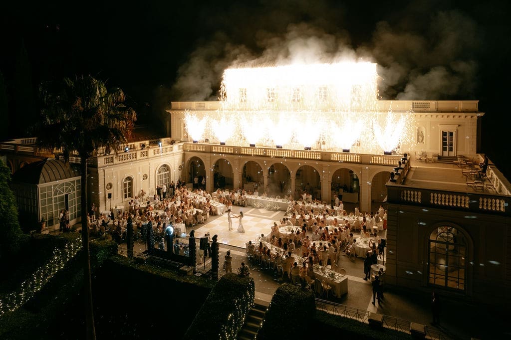 Their first dance was nothing short of magical, as cold sparks cascaded from the rooftop of the villa, creating a glittering waterfall of light against the elegant walls. The night continued with an epic afterparty, kicked off by Freddy’s DJ partner from Louis the Child and joined by other renowned DJs, keeping the energy high and the dance floor alive until 3 AM. Theirs was a celebration guests won’t soon forget!