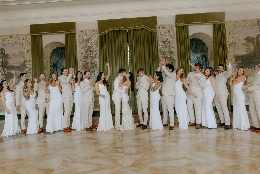 Perched high above the city, Villa Miani is the kind of venue that makes a statement before guests even step inside. This nineteenth century villa offers breathtaking panoramic views of Rome in addition to its stunning architecture. Its grand exterior, lush landscaping, and ornate fountains set the tone for a celebration filled with beauty and timeless sophistication. With multiple spaces for ceremonies, cocktail hours, and receptions, couples can create a seamless flow to the day without ever leaving the property.